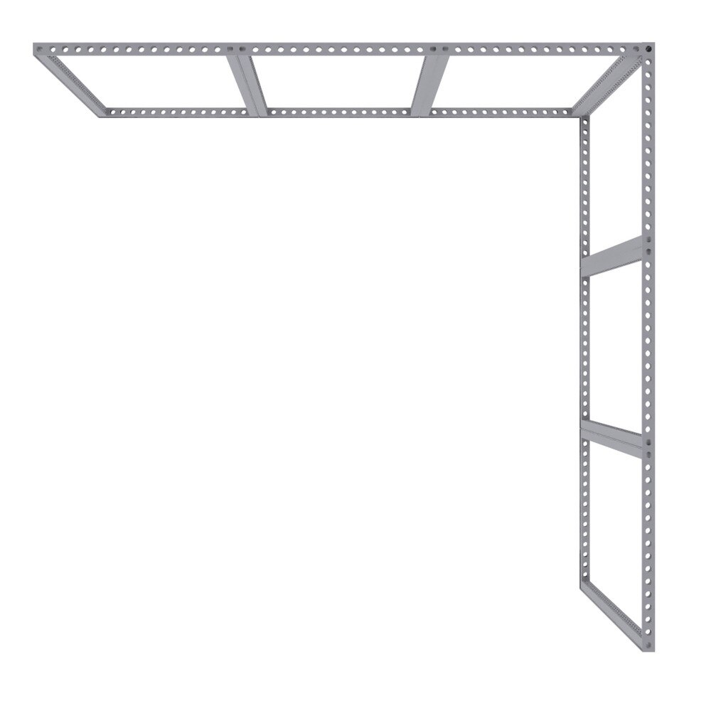 Modco Modular Display 13 is a three-dimensional 10’ x 10’ pre-designed exhibit booth. Stylish and lively, incorporates a 10’ wide backwall with a 10’ wide return. Tool-free perforated modular aluminum frames make up this booth and connect with toolless pin connectors during assembly. A flawless finish completely covers the perforations.
