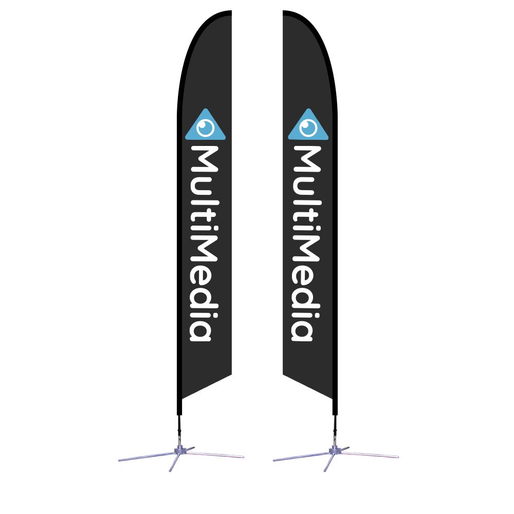 Perfect for quantity orders, the new flagpole hardware redesign for our Best Seller Falcon Flag® is the economical choice. Plus, with upgraded hardware, its new pole connections give more height options. Now in more sizes, you can find your favorite Falcon® flags in these heights: XS (7′), SM (8.25′), MD (10.5′), LG (14′), XL (17′). Display Falcon Flag® on outdoors. Insert the spike base into grass or use the X-base to stand on concrete. We custom print your graphic artwork on polyester mesh by the process of dye sublimation.