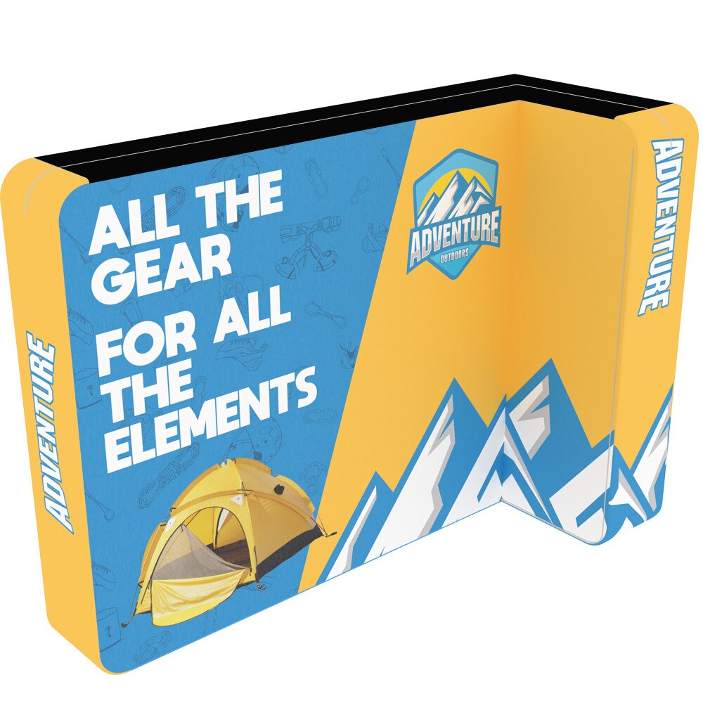 Designed for maximum impact, the dye-sublimated stretch fabric graphics deliver vivid colors and sharp details. The pillowcase-style design wraps seamlessly around the front, back, and end caps, creating a polished, high-end appearance. The top and bottom panels are finished with solid white fabric, adding an extra touch of sophistication.